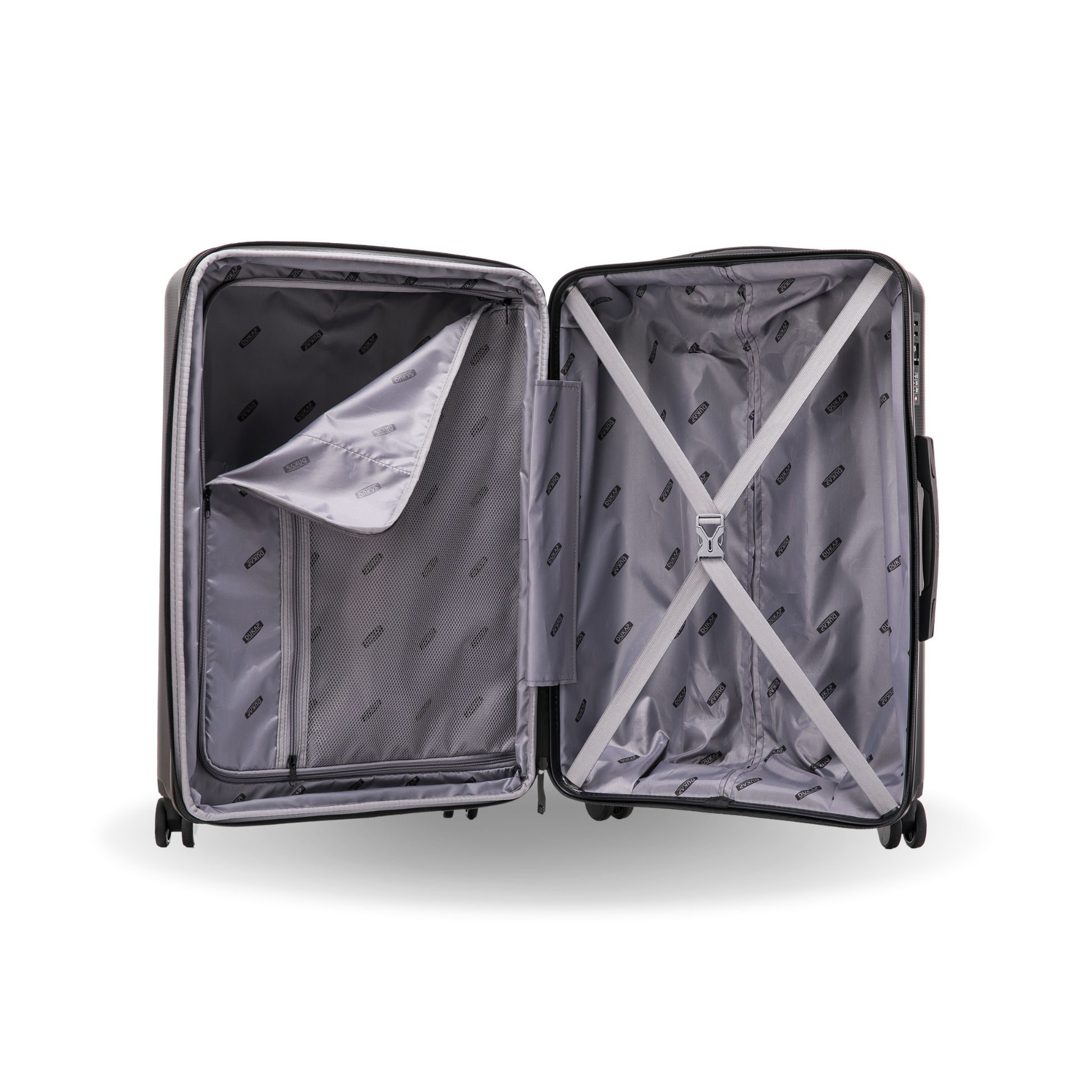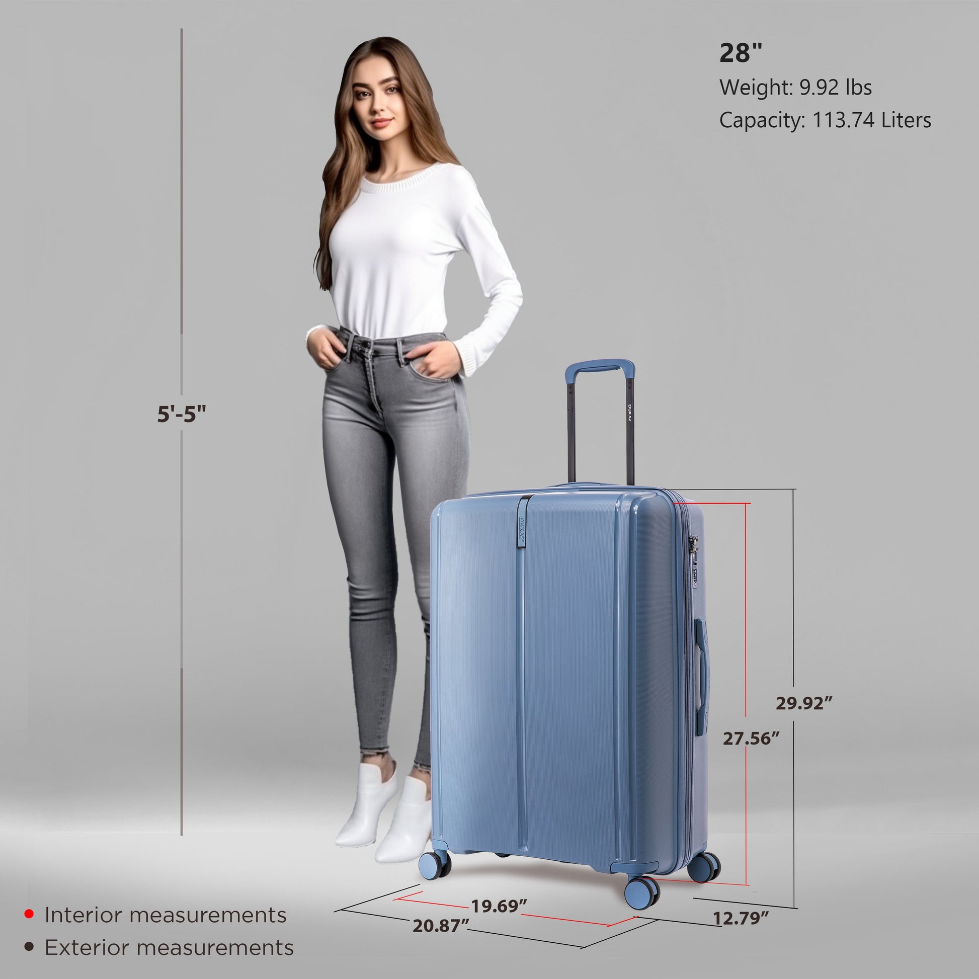 The Dukap Airley 28-Inch Luggage boasts an indestructible hardside shell crafted from lightweight polypropylene, blending durability with a sophisticated design for stylish travel.... The built-in TSA-approved combination lock provides peace of mind for your valuables. The fully lined, roomy interior includes a zippered compartment and a large mesh pocket on one side, with snap-on straps on the opposite side for precision packing and easy access to your necessities. Additionally, the suitcase can expand by 2 inches to accommodate evolving travel needs with ease.