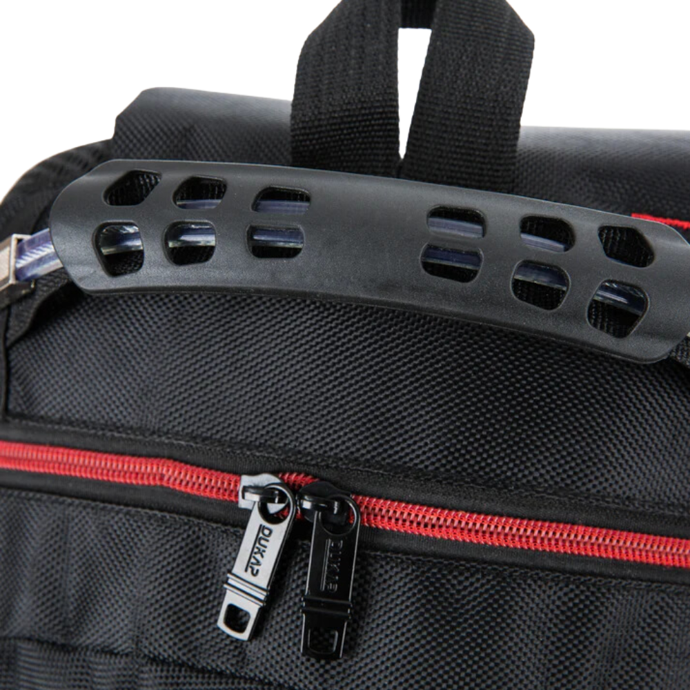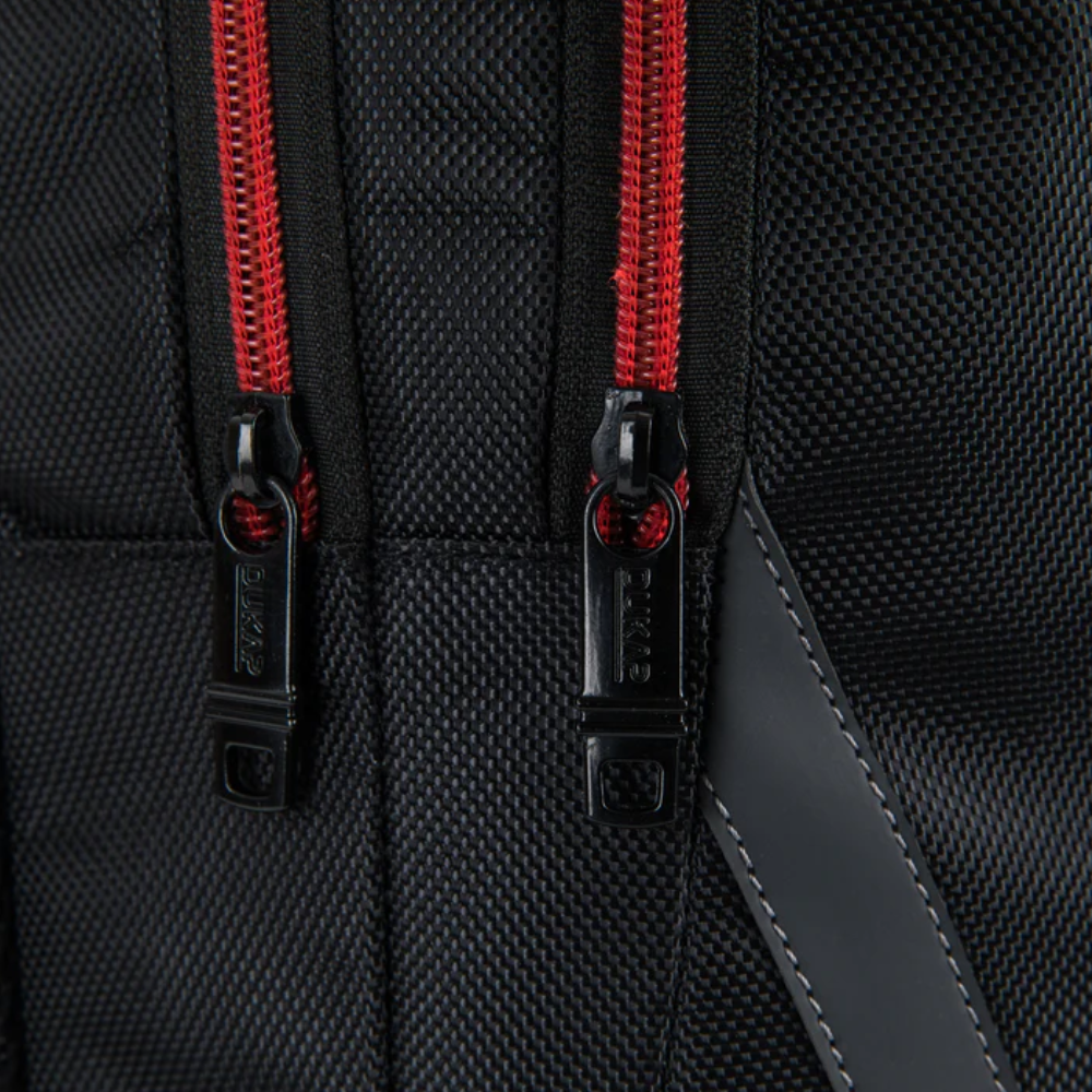 The DISRUPTOR Executive Laptop Backpack is weather-resistant and made of heavy-duty 1680D Ballistic Nylon. It has a fully padded computer sleeve that fits a 15.6” laptop,... large multi-compartments, mesh water bottle pockets, a premium multiple pocket organizer, and padded shoulder straps and back panel.