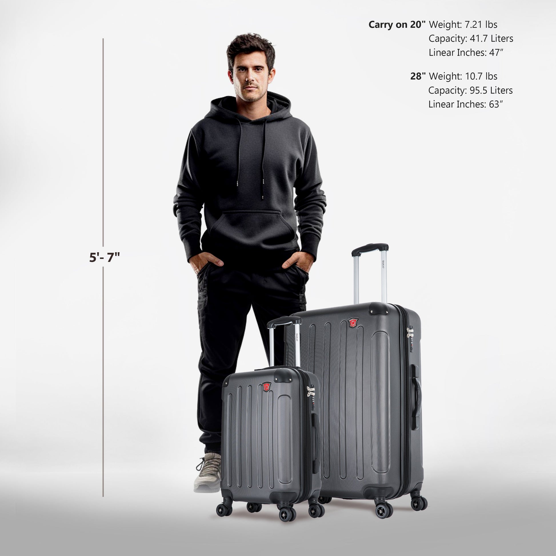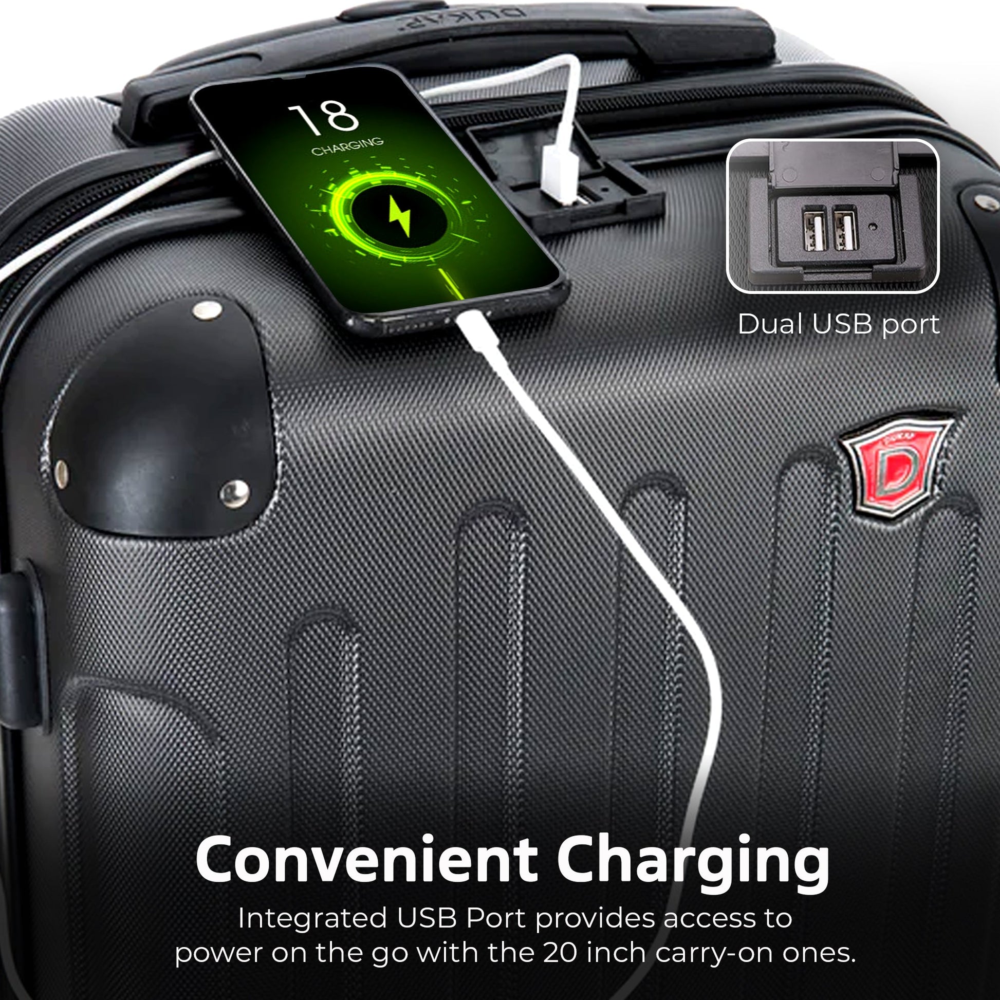 The Dukap INTELY hardside spinner 2-piece luggage set is the ultimate travel companion, featuring an expandable body, 360° silent wheels, a TSA-approved lock, a digital weight scale, and protective corner bumpers.... With a fully lined interior, zippered compartments, and slip pockets, this luggage offers ample space for all your belongings. Its ergonomic gel handles and retractable trolley system ensure effortless lifting and maneuvering. Travel in style and comfort with this durable and versatile luggage set.
