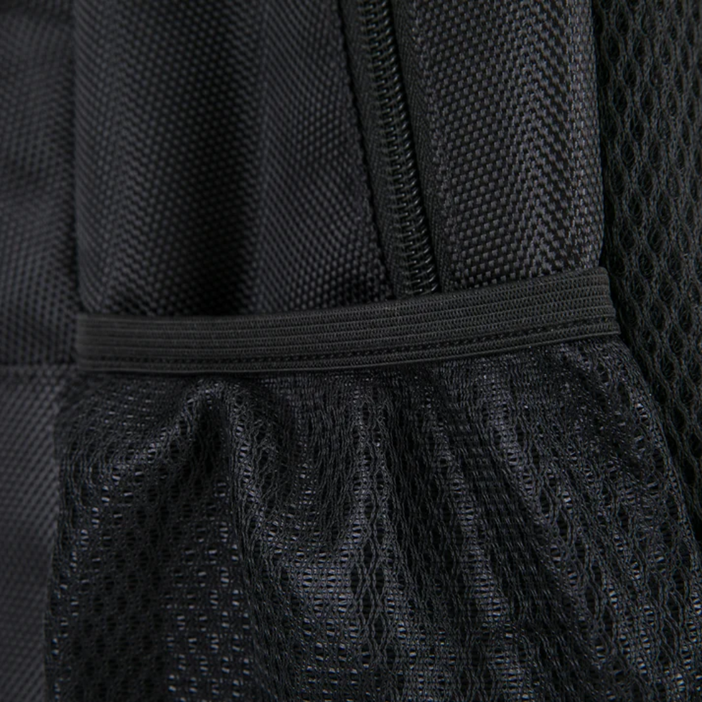 Mesh water bottle pockets on the sides, premium multiple pocket organizer, padded shoulder straps, and adjustable sternum straps.