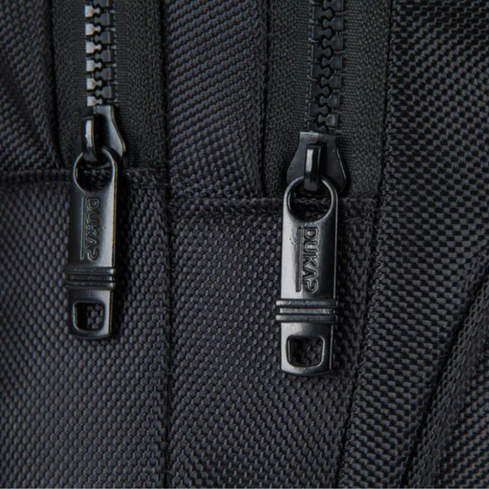 The DUKAP RIU is made of heavy-duty 1680D Ballistic Nylon. This durable weather-resistant backpack is lightweight and ready to withstand heavy use and harsh conditions. Fully padded computer sleeve fits up to a 15.6” laptop and opens quickly at airport security. ... Interior offers large multi- compartments design. Front compartment with convenient access zipper for quick access, Mesh water bottle pockets on the sides, premium multiple pocket organizer, padded shoulder straps, adjustable sternum straps, comfortable top handle, padded back panel for added support and comfort.